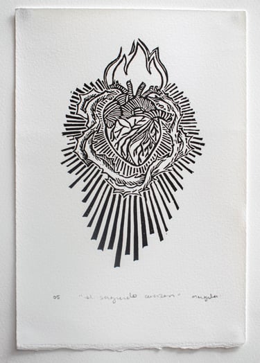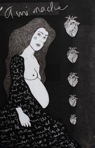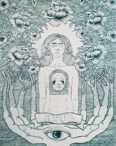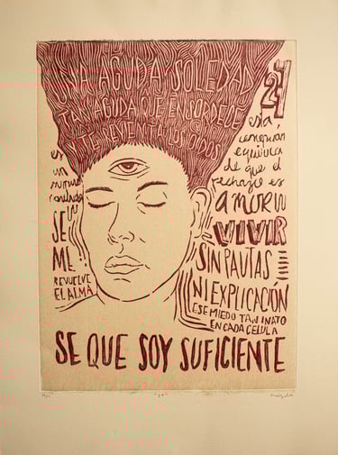 Inicié creando una plancha de intaglio con hardground, y después procedí a repetirla una y otra vez. En el proceso encontré muchas formas, pero más que eso, descubrí distintos significados.