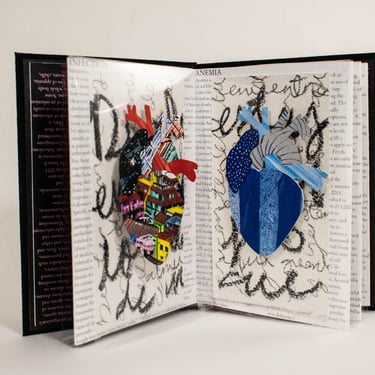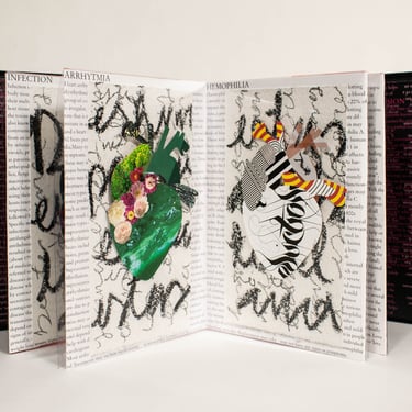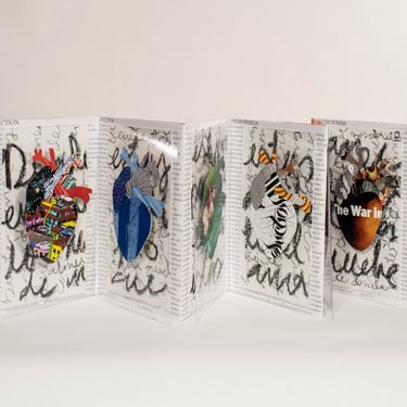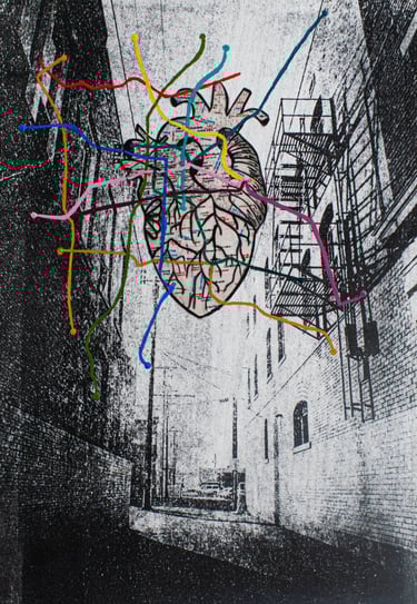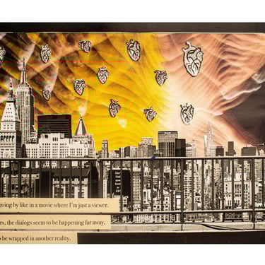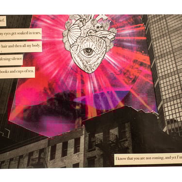 La primera capa es la enfermedad, la segunda es la carta de amor y la capa final es el corazón hecho en collage, porque la vida está compuesta de muchas texturas y colores.