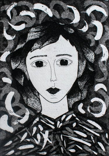 Me encanta mostrar esta colección de monotipos porque siempre hay una nueva interpretación, una nueva figura escondida en algún lugar.